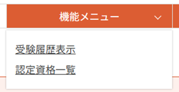 ログイン後、「機能メニュー」から「受験歴表示」を選択して受験履歴ページを表示します。試験日、科目、結果、結果レポート、合格者番号が一覧で表示されます。