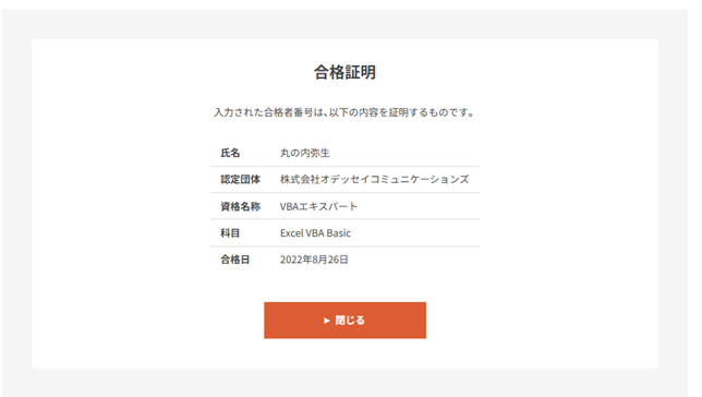 機能メニュー>認定資格一覧には、取得条件となる複数科目に合格した場合に、その認定履歴が表示されます。(例:VBAエキスパート Standard Crownなど)